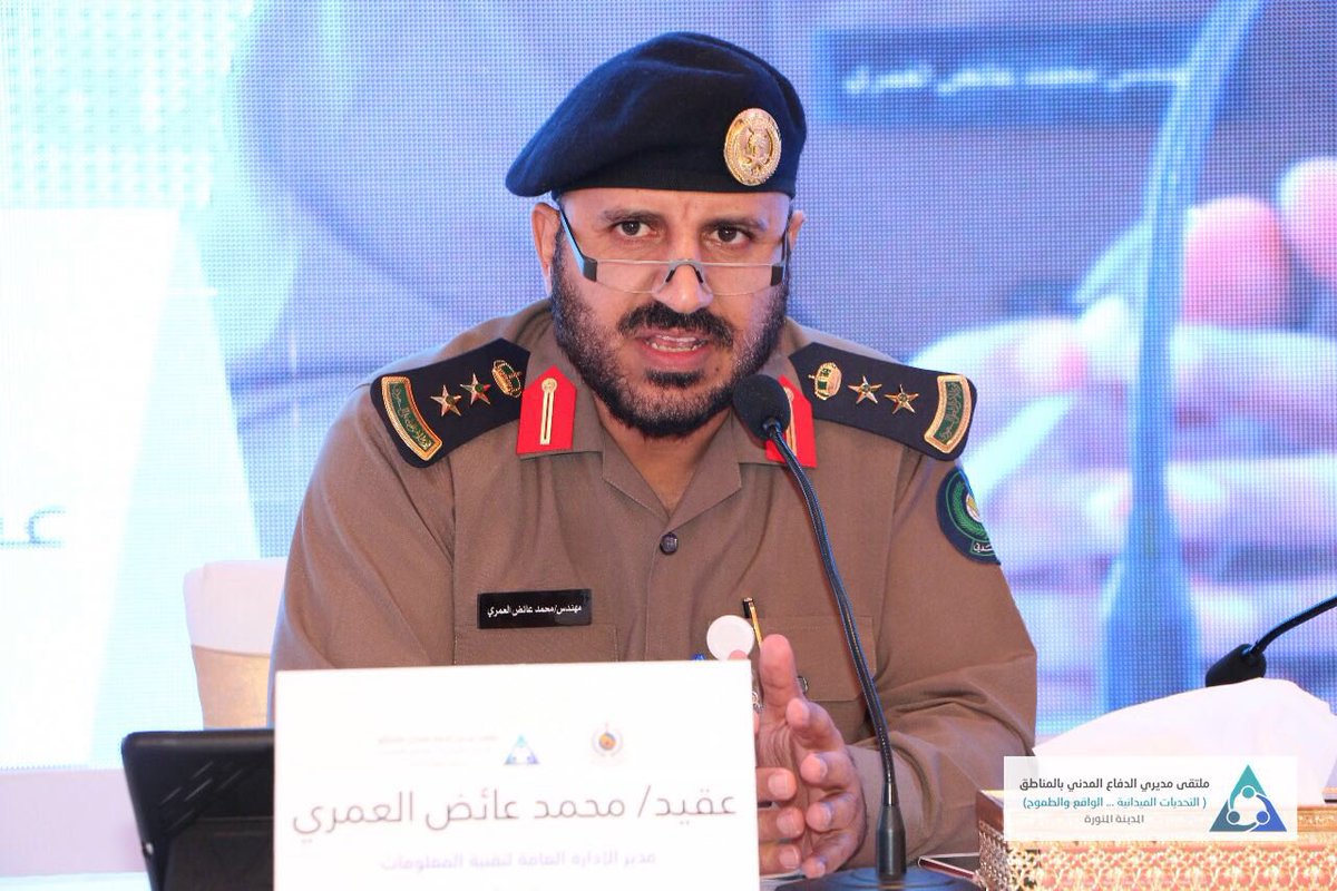 O Xrhsths الدفاع المدني السعودي Sto Twitter المشاركون في الجلسة الأولى مدير الإدارة العامة لتقنية المعلومات العقيد م محمد العمري مدير الإدارة العامة للعلاقات والإعلام العقيد عبدالله ثابت
